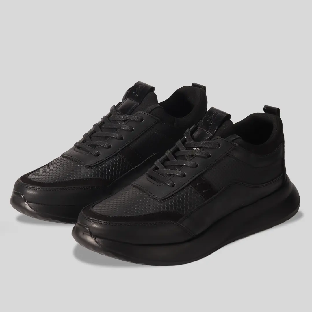 DENVER todo negro zapato de cuero para hombre con suela EVA ultraliviana ideal para quienes buscan comodidad máxima en un diseño sobrio.